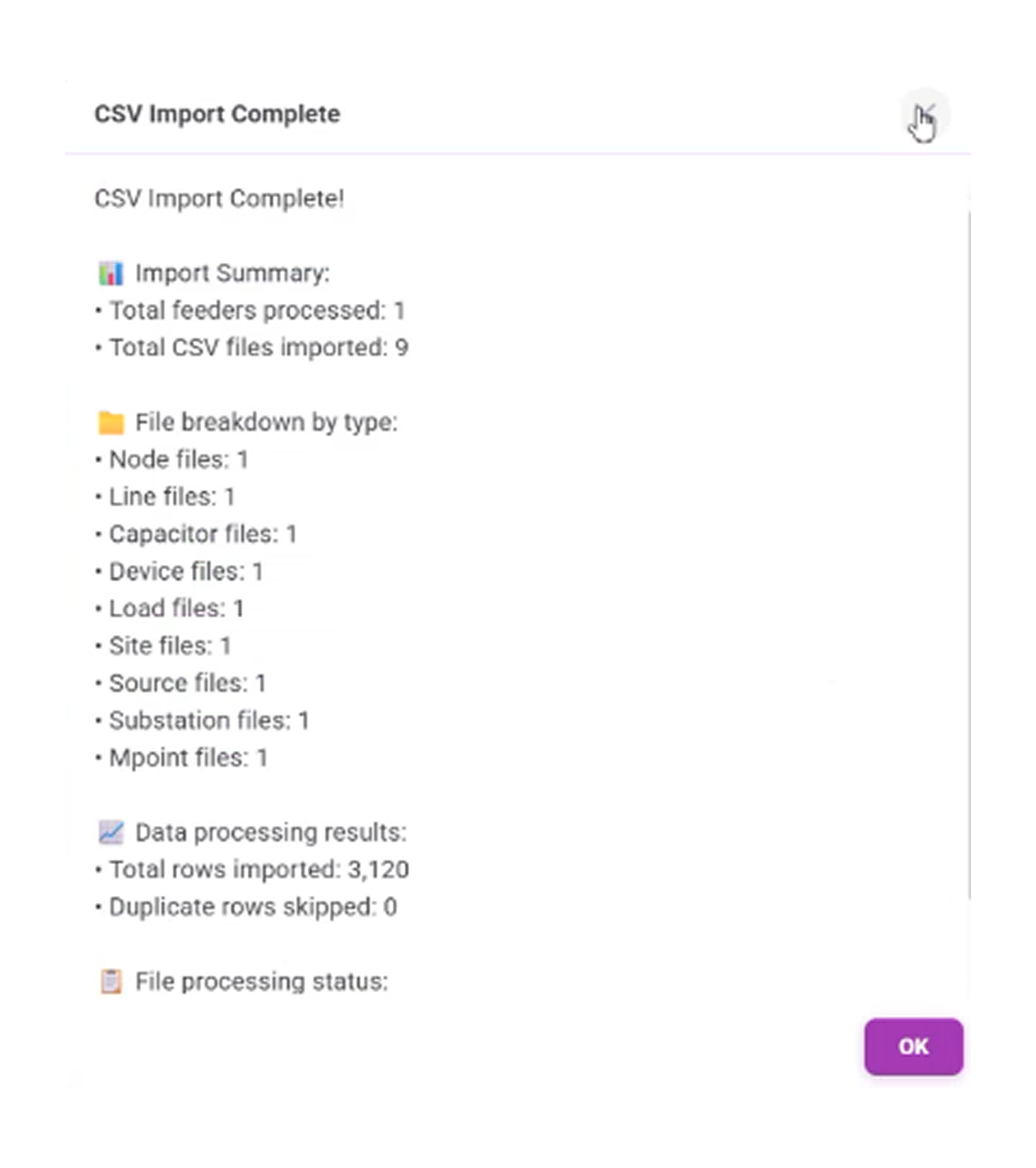 The ADMS upload feature allows users to import network data into the system by uploading a ZIP file containing multiple CSV files.
